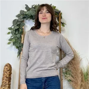 Y376- Pull FIN sans laine «Voggo» (T36-T48) (taupe)