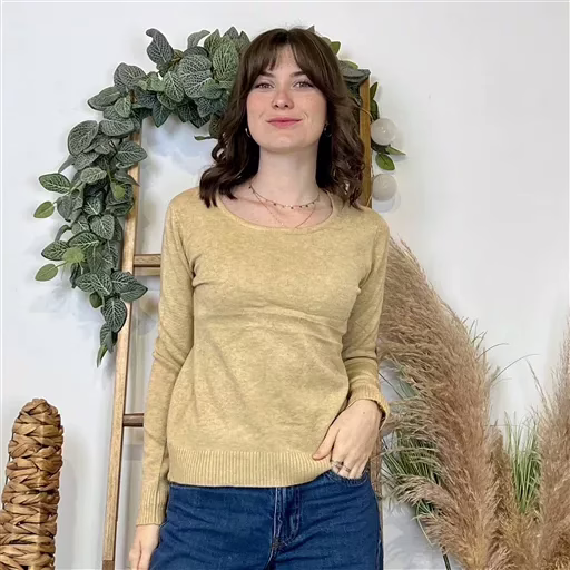 Y376- Pull FIN sans laine «Voggo» (T36-T48) (beige)