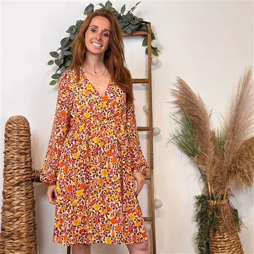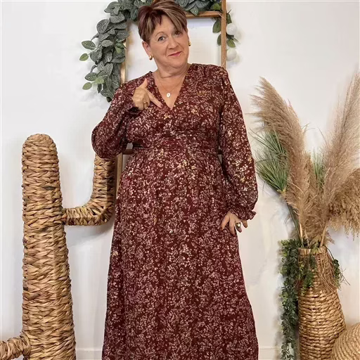 K077- Robe Maëlle fleurettes (T40-T48) (marron)