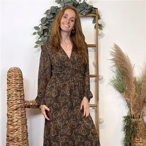 K077- Robe « Maelle » Arabesques (T36-T38) (kaki)