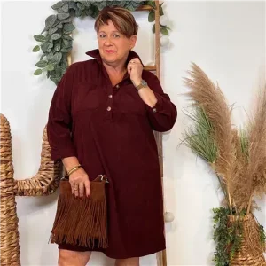 K038- Robe chasuble velours « Season » (T36-T40) (marron)