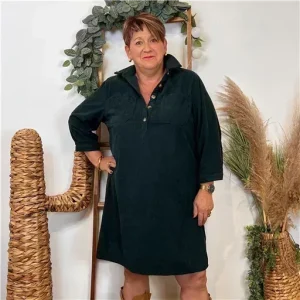 K056- Robe Velours « Maëlle » (T40-T48) (vert sapin)