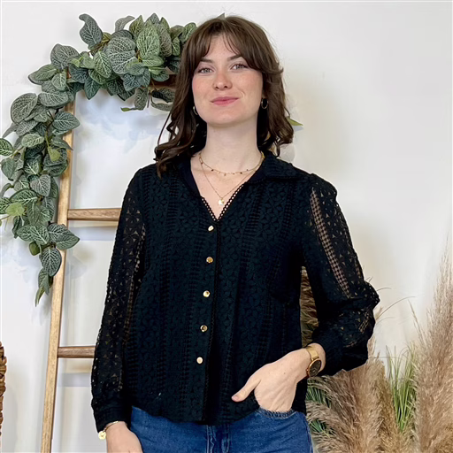 K005- Blouse Coton brodée (T36-T40) (noir)