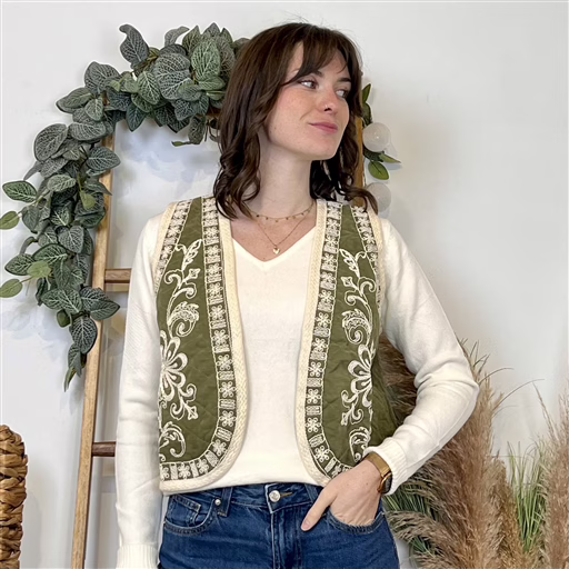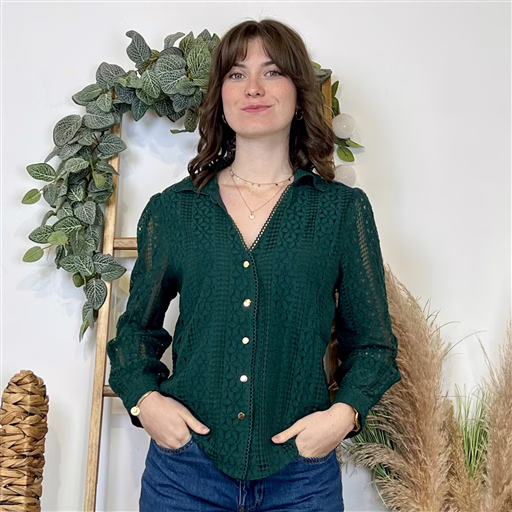 K005- Blouse Coton brodée (T36-T40) (vert sapin)