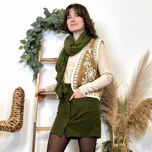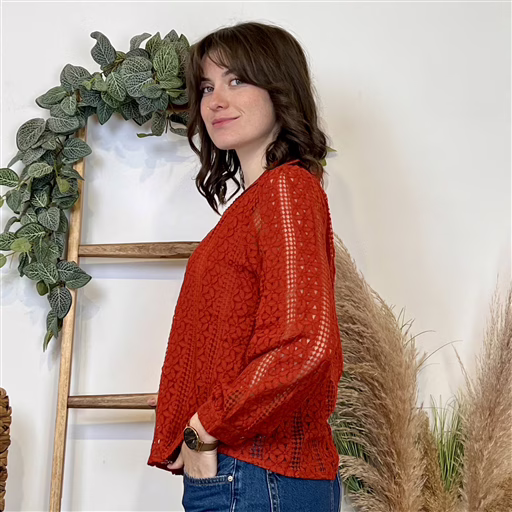 K005- Blouse Coton brodée (T36-T40) (rouille)