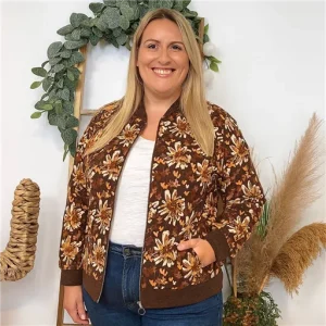K014- Bomber By One imprimé automnal (marron)