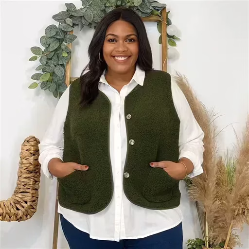K021- Gilet sans manche moutonné (T40-T48) (kaki)