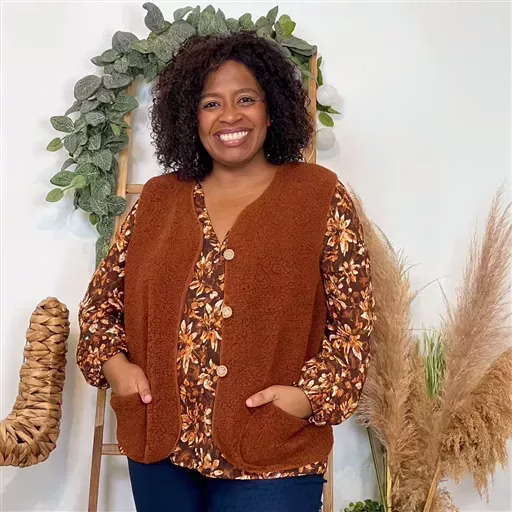 K021- Gilet sans manche moutonné (T40-T48) (rouille)