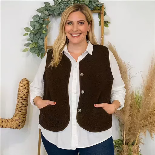 K021- Gilet sans manche moutonné (T40-T48) (marron)