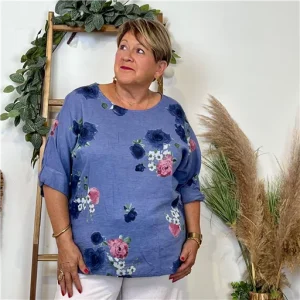 Z151- Tunique coton « FLEURS » (Gt) 🇮🇹 (bleu jeans)