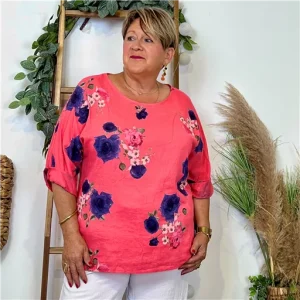 Z151- Tunique coton « FLEURS » (Gt) 🇮🇹 (corail)