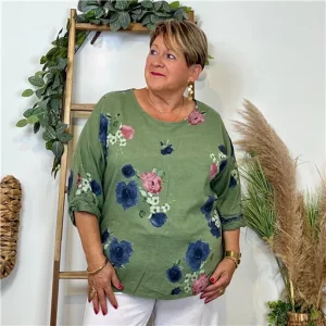 Z151- Tunique coton « FLEURS » (Gt) 🇮🇹 (kaki)