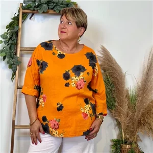 Z151- Tunique coton « FLEURS » (Gt) 🇮🇹 (orange)