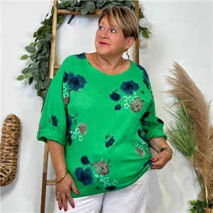 Z151- Tunique coton « FLEURS » (Gt) 🇮🇹 (vert brésil)