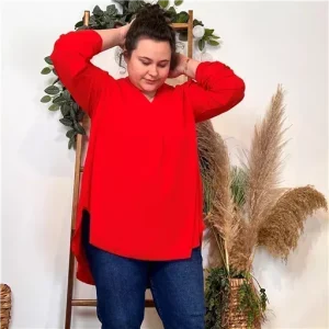 Z372- Blouse Mi-longue unie (TU) 🇮🇹 (rouge)