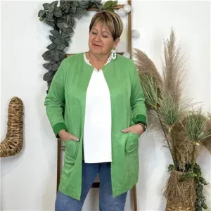 Z554.- Veste ouverte en suédine 🇮🇹 (vert brésil)