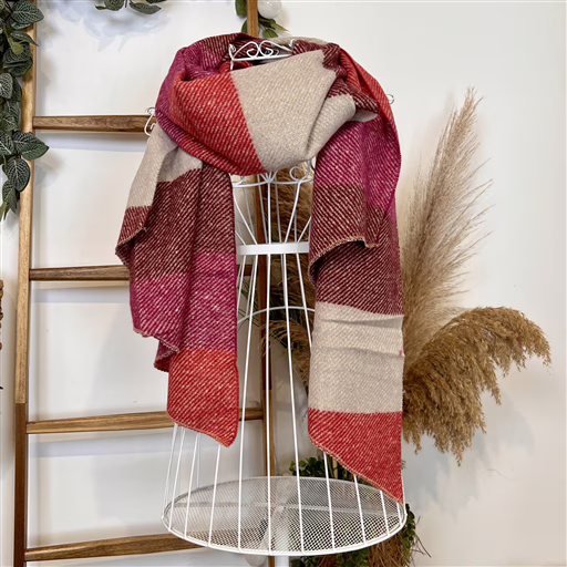 Y501- Écharpe à carreaux asymétrique (bordeaux)