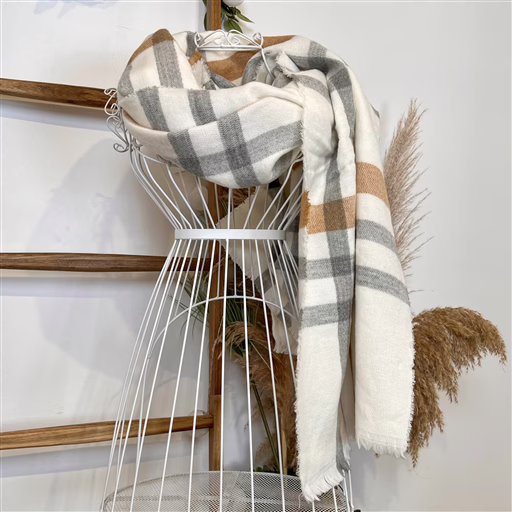 Y499- Écharpe à Carreaux Douce (ecru)