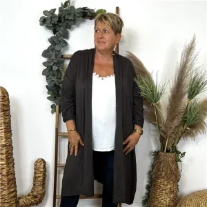 K860- Gilet Long en maille (Gt) (marron)