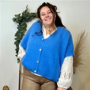 Z083- Gilet boutons fantaisies (Gu) (bleu indigo)