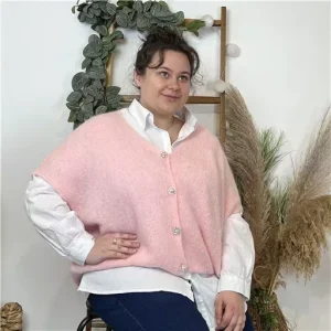 Z083- Gilet boutons fantaisies (Gu) (rose pâle)